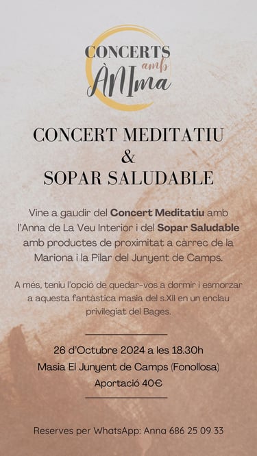 Viu i gaudeix dels Tallers Experiencials i els Concerts de música en directe i connexió profunda, en el què el teu cos, ment, sentiments i la teva energia tindràn l'oportunitat de brillar.